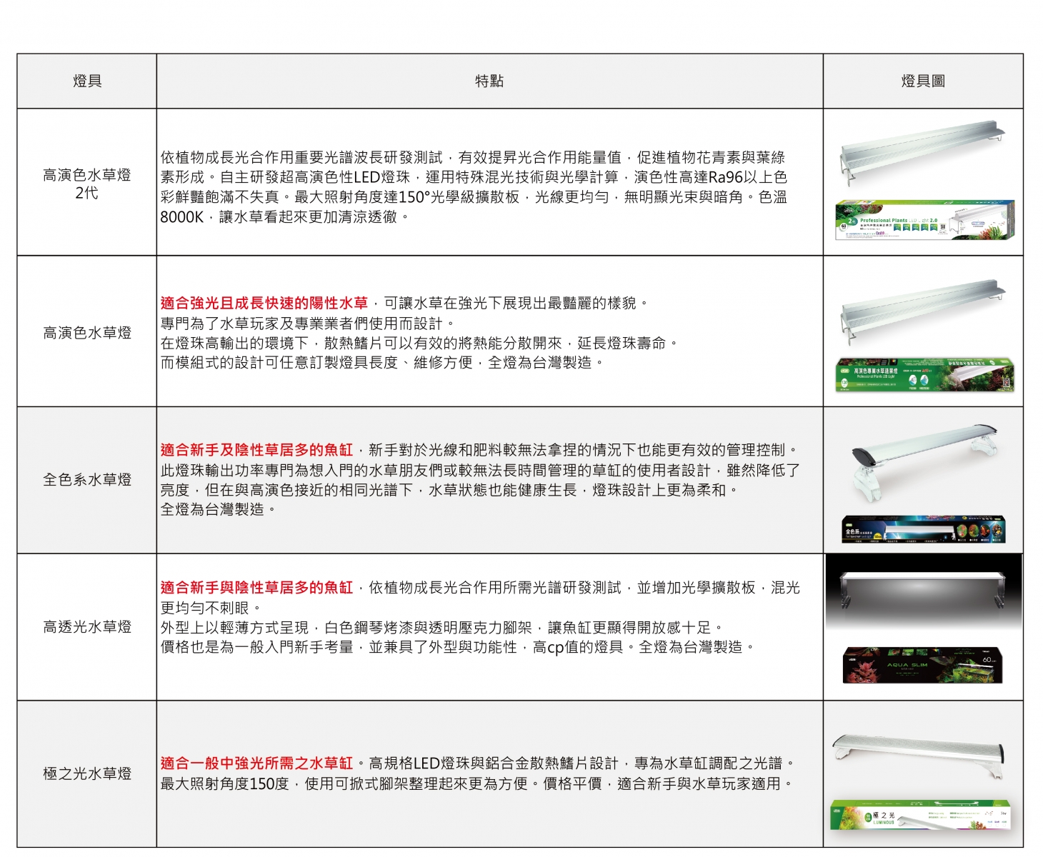 1.高規格LED燈珠,針對不同水族領域調配專用光譜2.台灣設計製造,安規認證 45008,安全穩定有保障。3.獨特設計可掀式吊立兩用透明腳架,可自調燈具照射角度,方便魚缸維護。4.特製鋁合金陽極防鏽工藝外殼,耐用美觀,散熱效率高。5.低功耗,高節能,綠色環保。6.光線均勻,無明顯光束與暗角,最大照射角達150°。