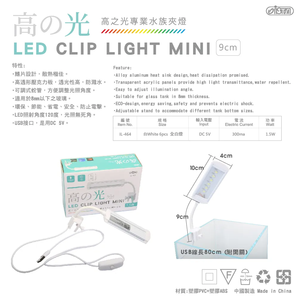 IL-464 ISTA 高之光 USB夾燈 蛇管9cm 1.5W $133
