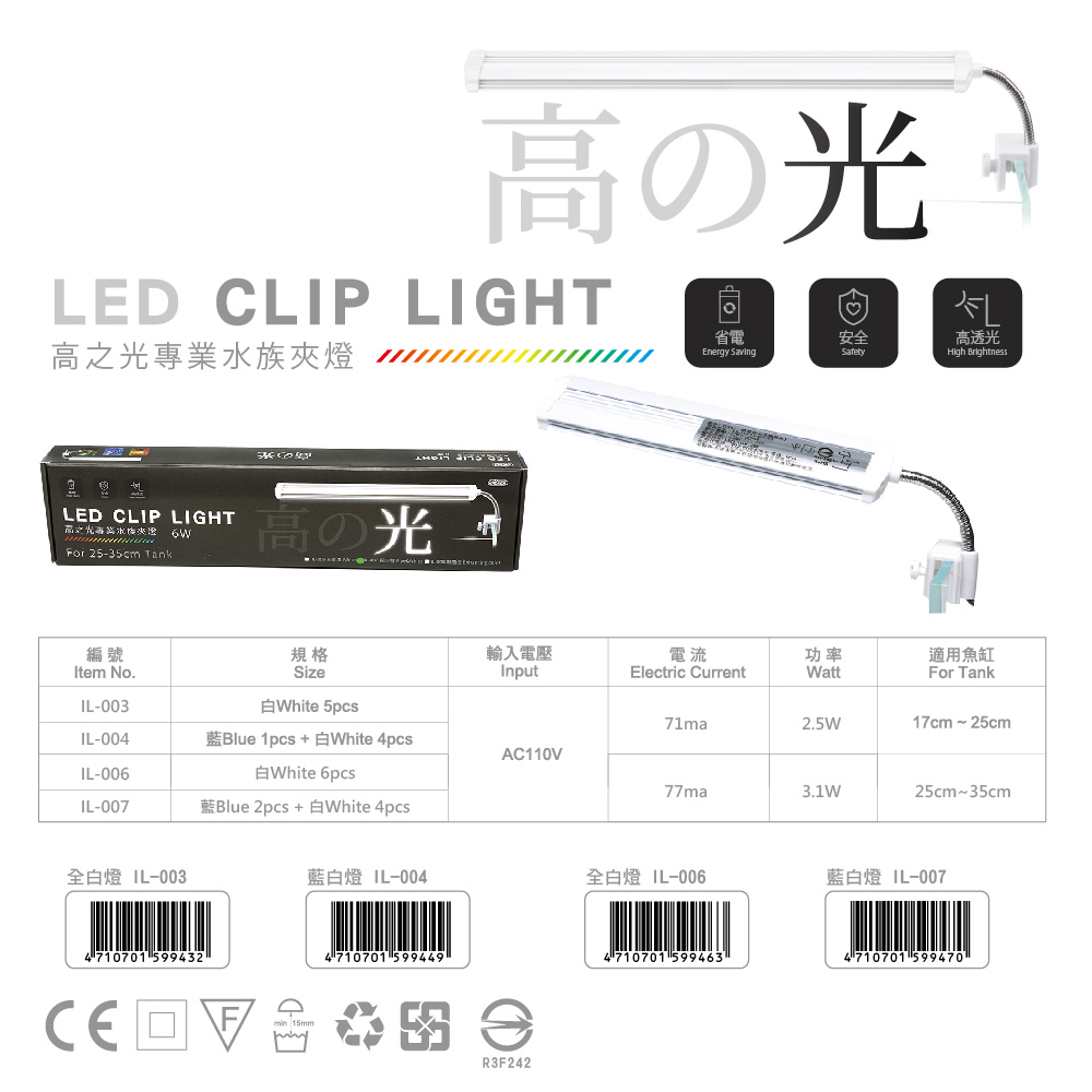 IL-006 高之光-夾燈 25cm 6W 全白燈 $225