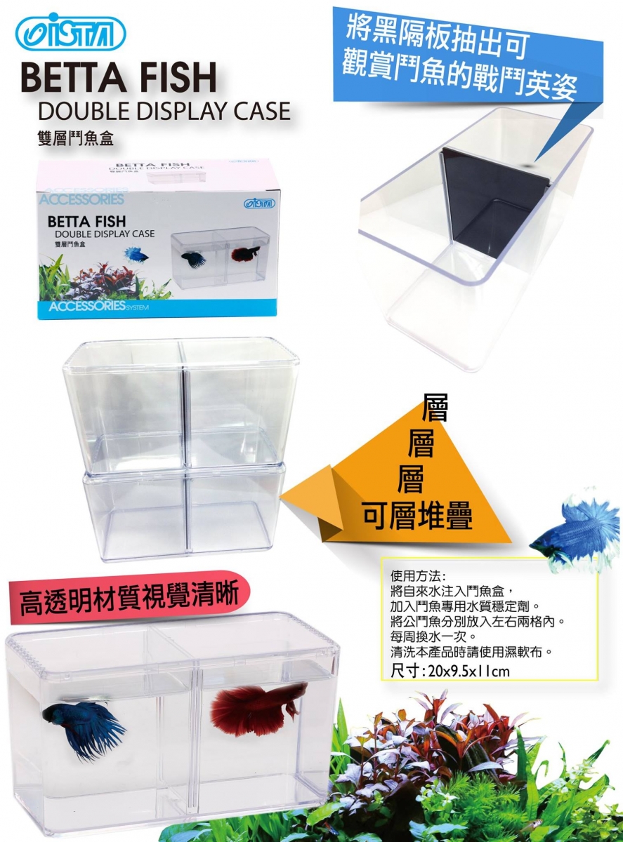 雙層鬥魚盒可層層堆疊設計新增黑色插卡隔板平時插黑色隔板可讓鬥魚休息想觀賞"鬥魚"時再拔出插卡即可