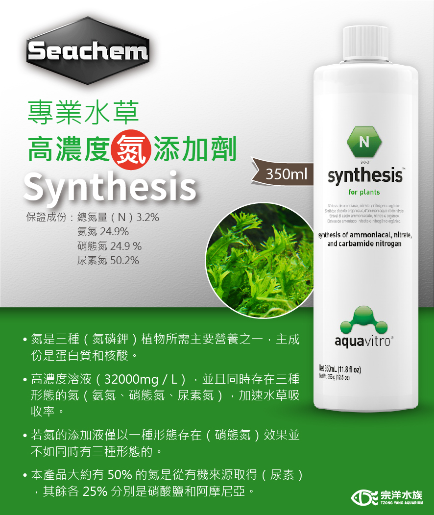 同時存在三種形態的氮(氨氮、硝態氮、尿素氮),可加速水草吸收率。